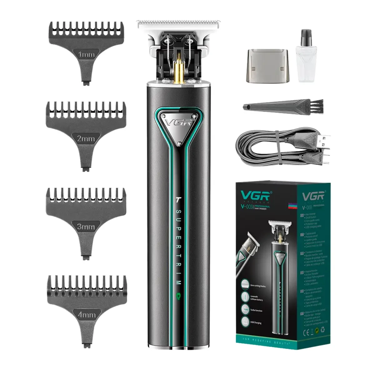 Тример для стриження волосся VGR 009 — поєднує в собі машинку для стриження волосся й бороди зі змінними 4 насадками (1 мм, 2 мм, 3 мм, 4 мм). Використовуючи сам тример без насадки, ви зможете створити рівні контури стриження, підголити баки або начисто вибрити шию.